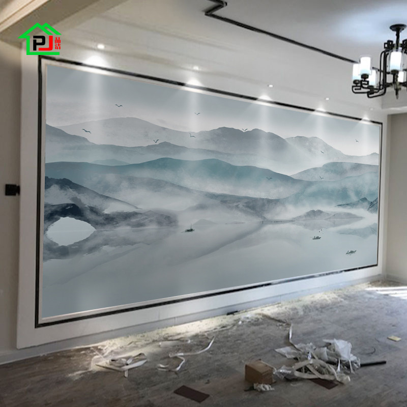新款中式電視背景牆水墨船壁紙山水畫客廳沙發牆紙臥室床頭壁佈ลดเหล อ 400